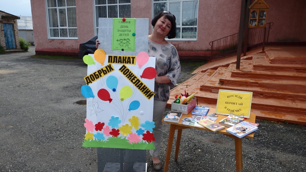 Районная библиотека провела акцию ко дню защиты детей. Библиотекари дарили всем прохожим буклетики и солнышки со стихами, детям дарили самодельные цветы, на которых написаны их права. Все желающие смогли оставить свои пожелания детям, молодым родителям на нашем Плакате добрых пожеланий.