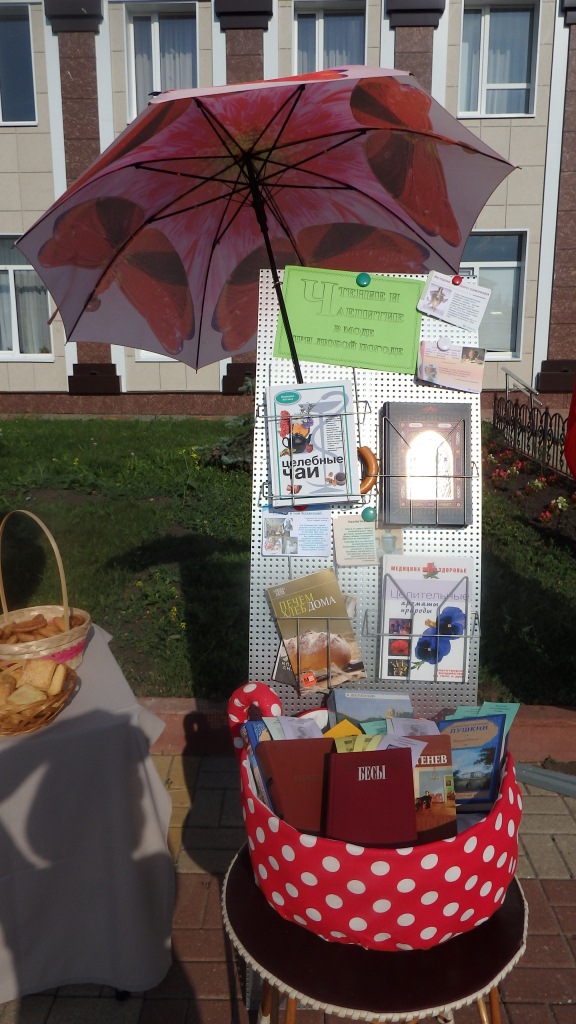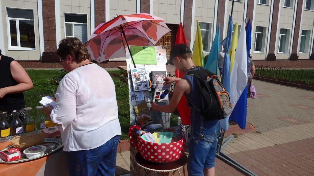 В день России в райцентре состоялся событийный фестиваль «Краснинский самовар» ставший одним из любимых летних развлечений для краснинцев и гостей района. Краснинская библиотека ежегодно принимает участие в фестивале. В этот раз были подготовлены тематические книжные выставки, сладкий стол с чаем и угощениями, вязаными атрибутами для чаепития, выполненные участниками клуба «Петелька» под руководством О. Логачевой.