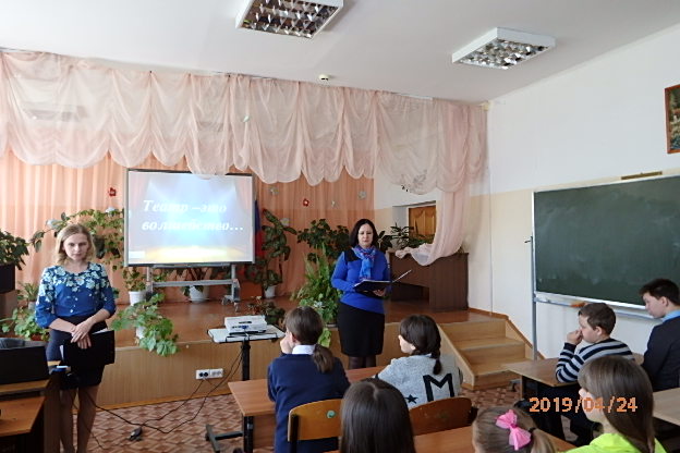 В школе поселка Лески состоялось мероприятие «Театр – это волшебство», посвященное Году театра в России. На встречу к школьникам пришли заведующая отделом обслуживания Краснинской межпоселенческой библиотеки Юрикова Юлия и библиограф Кретова Елена.