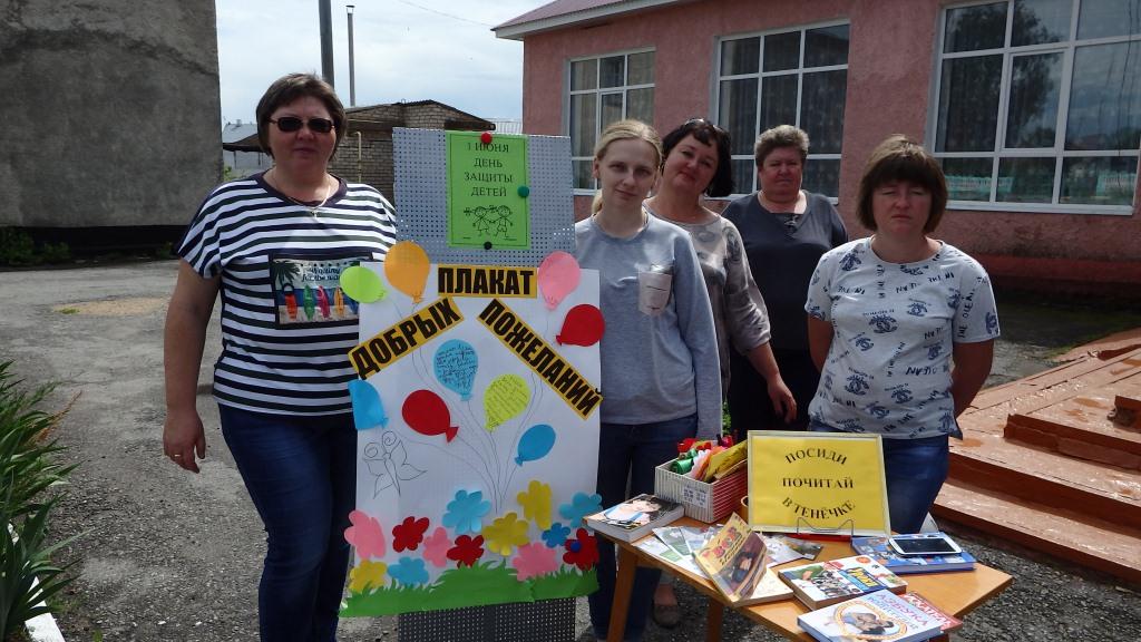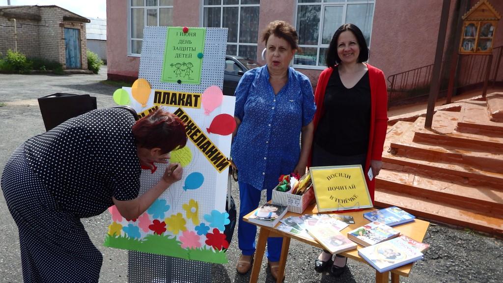 Районная библиотека провела акцию ко дню защиты детей. Библиотекари дарили всем прохожим буклетики и солнышки со стихами, детям дарили самодельные цветы, на которых написаны их права. Все желающие смогли оставить свои пожелания детям, молодым родителям на нашем Плакате добрых пожеланий.