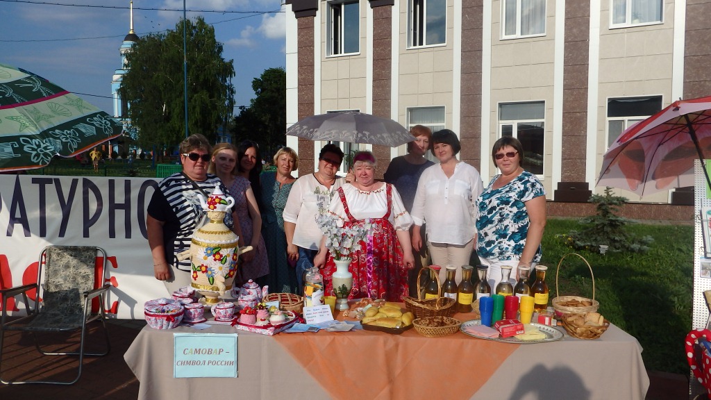 В день России в райцентре состоялся событийный фестиваль «Краснинский самовар» ставший одним из любимых летних развлечений для краснинцев и гостей района. Краснинская библиотека ежегодно принимает участие в фестивале. В этот раз были подготовлены тематические книжные выставки, сладкий стол с чаем и угощениями, вязаными атрибутами для чаепития, выполненные участниками клуба «Петелька» под руководством О. Логачевой.