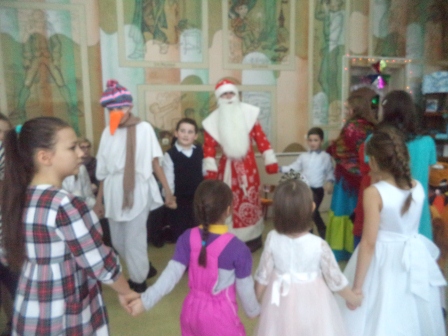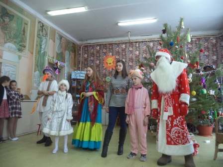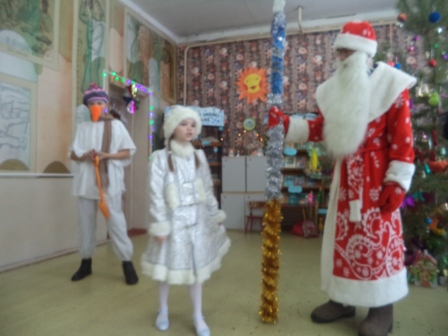 Новогодние утренники в детском отделе библиотеки по традиции готовят дети, посещающие, библиотечный клуб "Мальвина" (руководитель Р. Инютина). Снеговик (В. Фомичев), Снегурочка (Д. Логачева), Разбойник и Цыганка (С. Быковская и М. Мезенцева), символ наступающего года Свинка (Р. Заболотный), а также Дед Мороз (М. Зайчиков) и ведущая (Е. ядыкина) представили вниманию зрителей сказочное приключение, где добрые герои попадают в беду, но при помощи гостей праздника избавляются от этого колдовства и возвращаются к детям на новогоднюю елку.